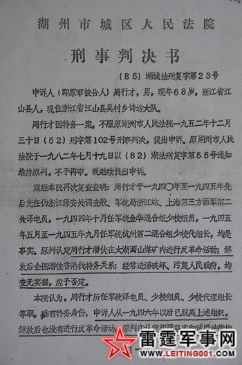 周行才因特务一案,不服原湖州市人民法院1952年12月30日(52)刑字102号刑事判决,提出申诉。……,……。(笔者注明:省略)